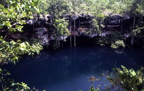 上图是联合国教科文组织的潜水员在墨西哥所发现的水下洞穴的入口。联合国教科文组织把洞里发现的人工制品以及人类生活的痕迹都看做是保护的对象。该洞穴往往在海水上涨时被淹没。