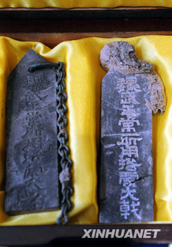 这是考古发掘出土的两块刻有“魏武王”铭文的石牌(2009年12月30日摄)。新华社记者朱祥摄
