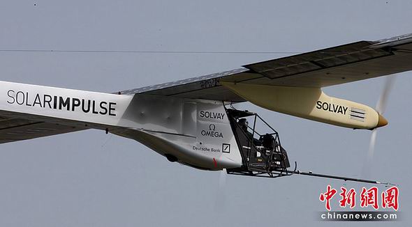 当地时间4月7日上午,全球首架依靠太阳能驱动的飞机进行首次试飞,预计此种新型飞机将在2011年实现环球航行。图片来源:中国新闻网